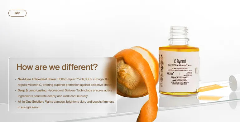 We've reimagined what modern Vitamin C skincare can achieve by completely rebuilding from the ground up using advanced biotech ingredients that work in harmony with your skin's natural processes.