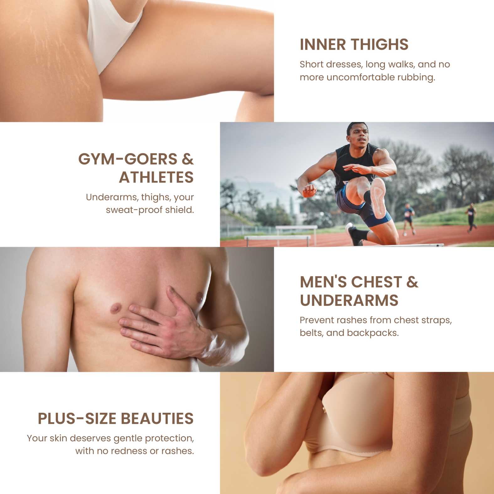 A revolutionary unisex anti-chafing solution designed to keep intimate areas and chafe-prone zones feeling fresh, dry, and comfortable all day long. Our innovative lotion creates a smooth, protective barrier that minimizes friction and prevents irritation during physical activity, sports, or daily wear.
