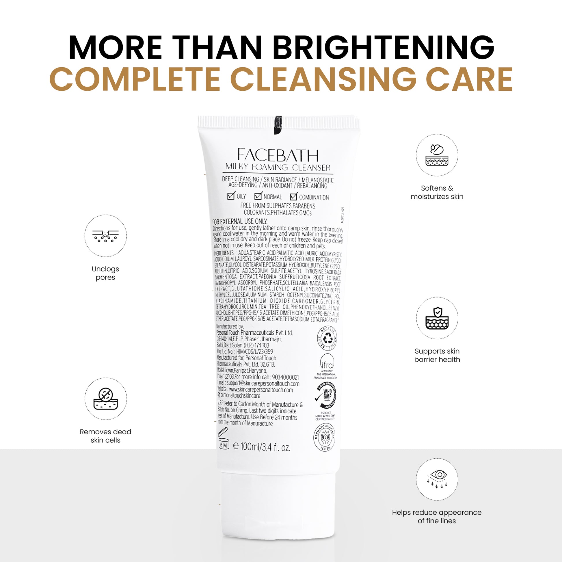 Here you can learn more about Deep Pore Cleansing Milk from Personal Touch Skincare. It contains various skin-nourishing ingredients such as natural fats, SabiWhite, Clair Blanche II, and more. You should use this cleansing milk because: