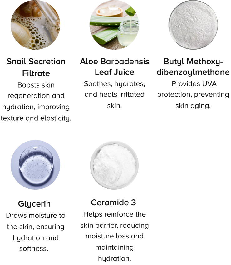 You’ll see instant hydration and protection, with long-term benefits like reduced UV damage and skin repair from snail mucin.