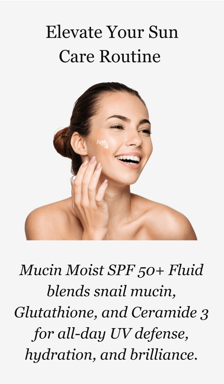 Discover next-gen sun protection with Mucin Moist SPF 50+ Fluid. Infused with snail mucin, it hydrates, repairs, and offers long-lasting, luxurious UVA/UVB protection for a radiant glow every day.