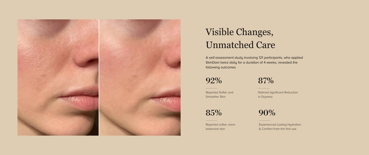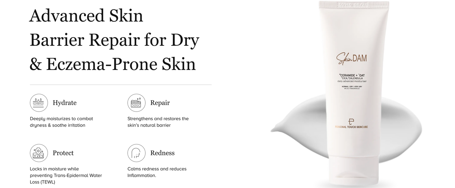 Dry skin is a very common yet distressing problem, occurring due to the lack of a proper skin barrier manifesting as a high degree of moisture loss in the form of Trans-Epidermal Water Loss (lEWL). It is usually caused by using over-stripping cleanser or other harsh chemicals which create breaks in the skin barrier, making the skin appear faky and parched and prone to redness and irritation.