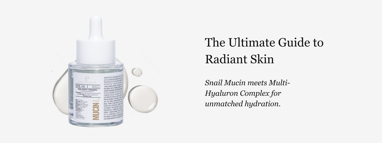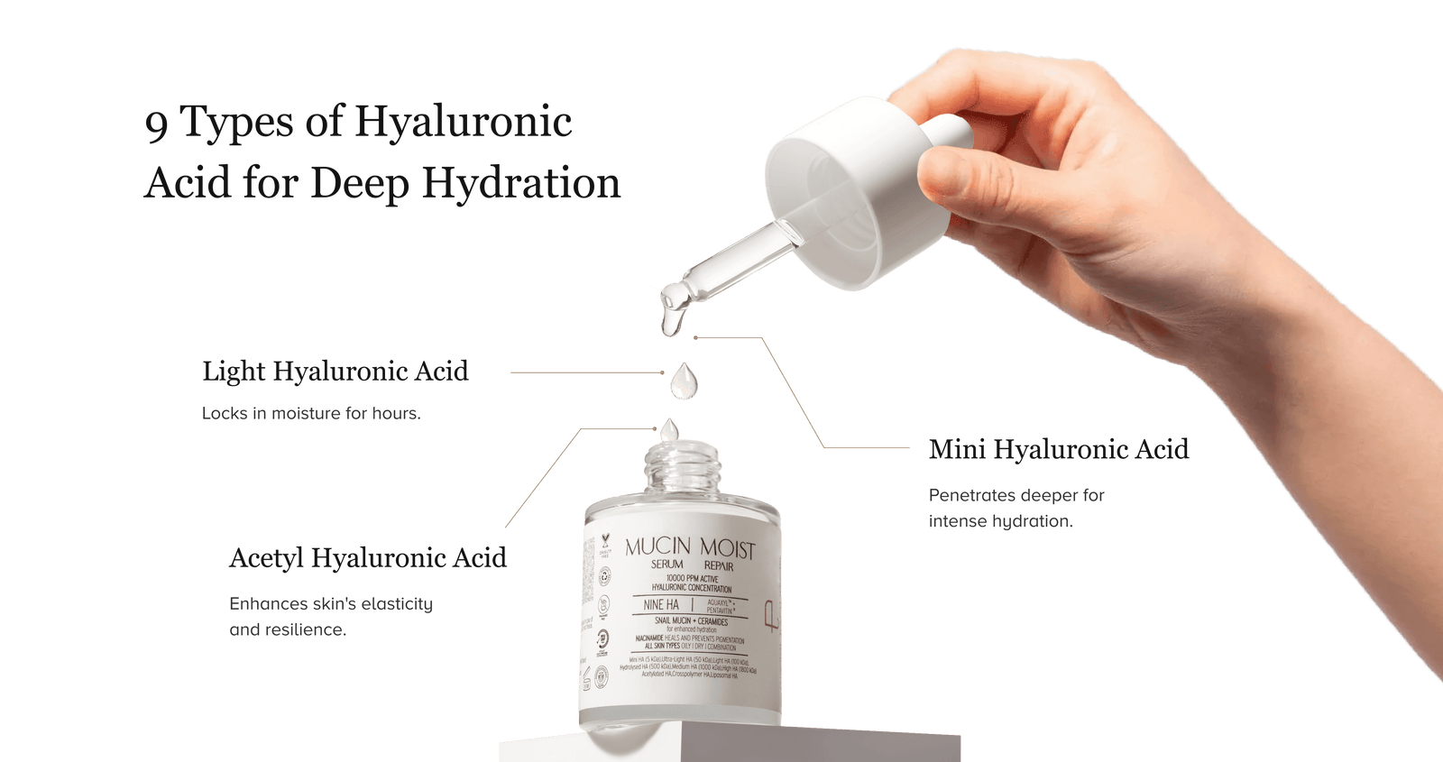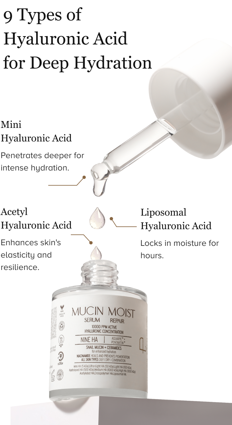 Mucin Moist Serum - World's 1st Snail Mucin | 9 Hyaluronic Acids | Ceramides | Niacinamide - For All Skin Types | 30ml