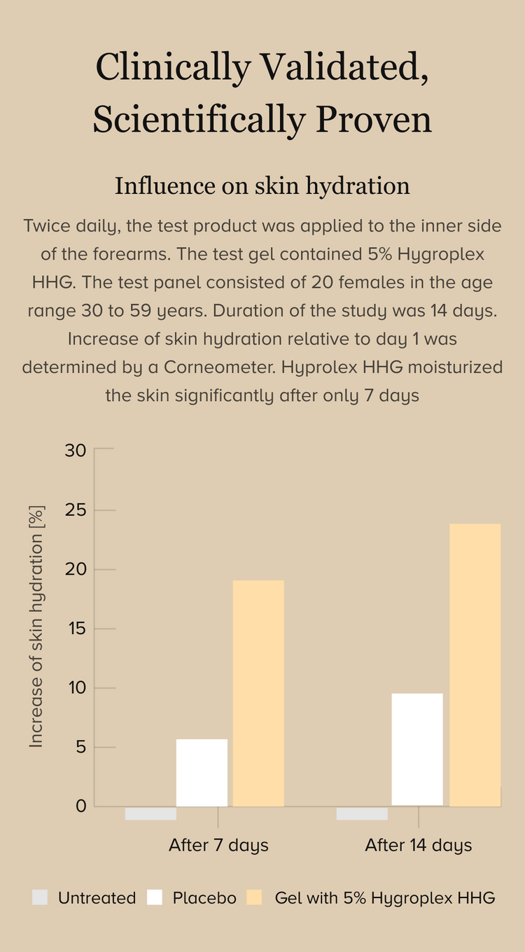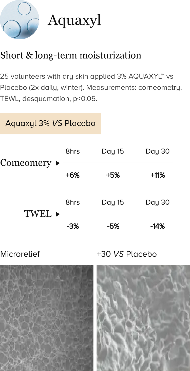 Mimics the skin's carbohydrate complex for deep hydration. Provides 72-hour hydration and improves barrier function.