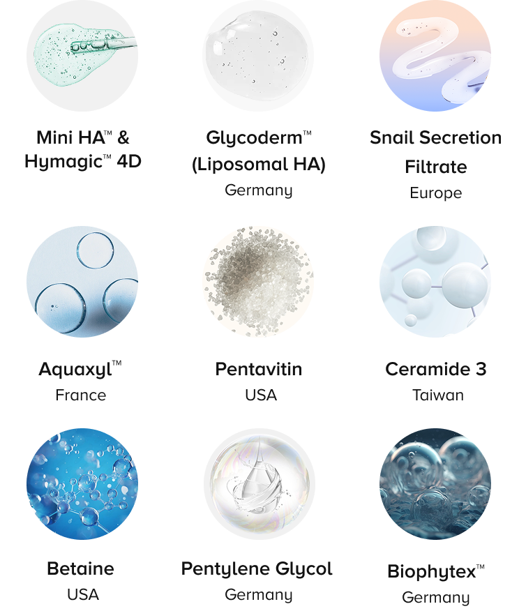 Hydrates skin from surface to deep layers. Boosts elasticity, reduces fine lines, and strengthens the moisture barrier